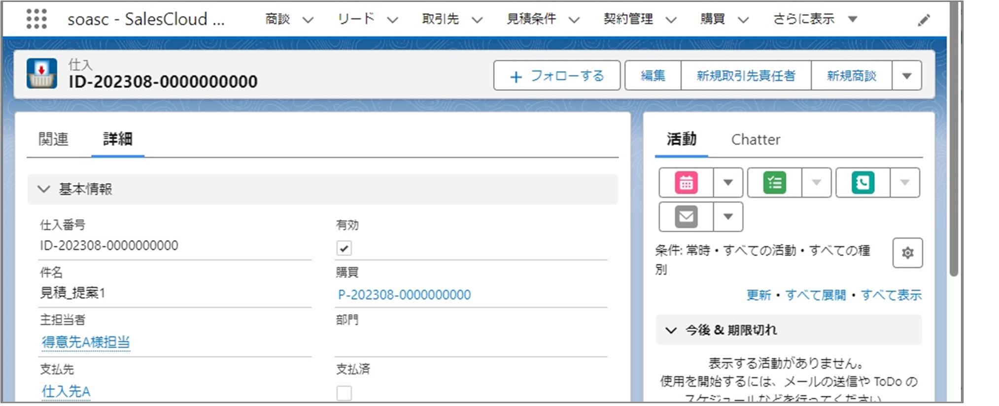 ◆「仕入」詳細画面のアクション