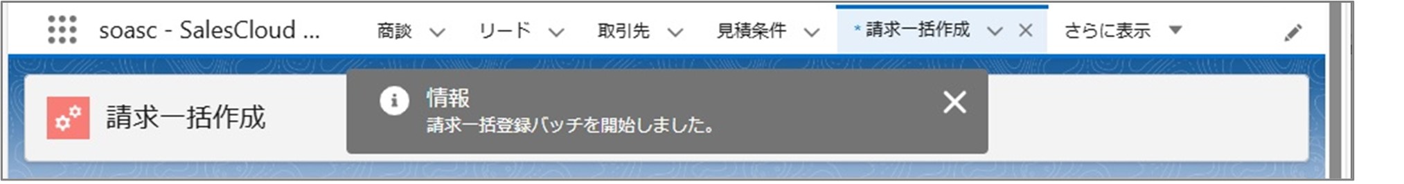 - 「請求一括登録バッチを開始しました。」というメッセージが表示されます。