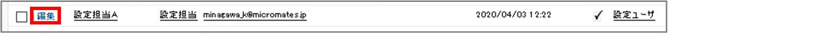 - 「すべてのユーザ」画面で「設定担当A」左の[編集]リンクをクリックします。